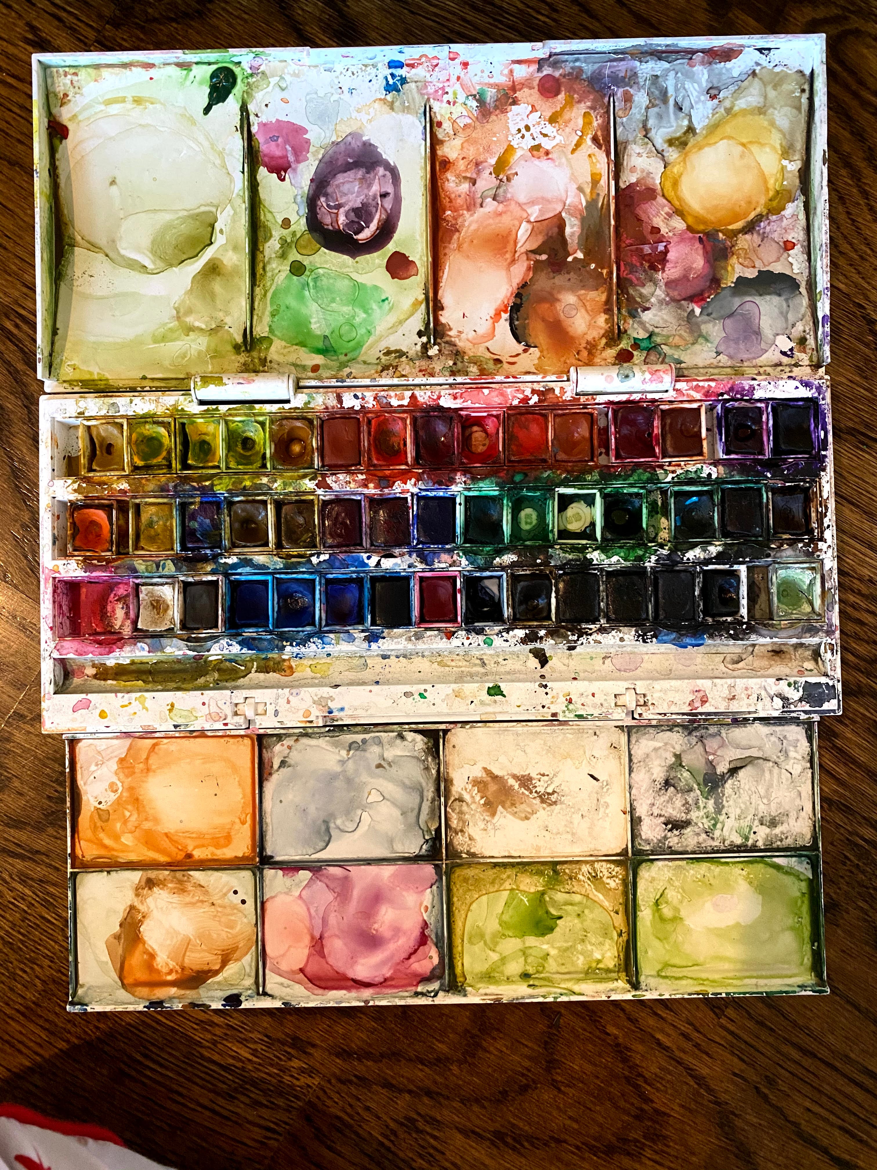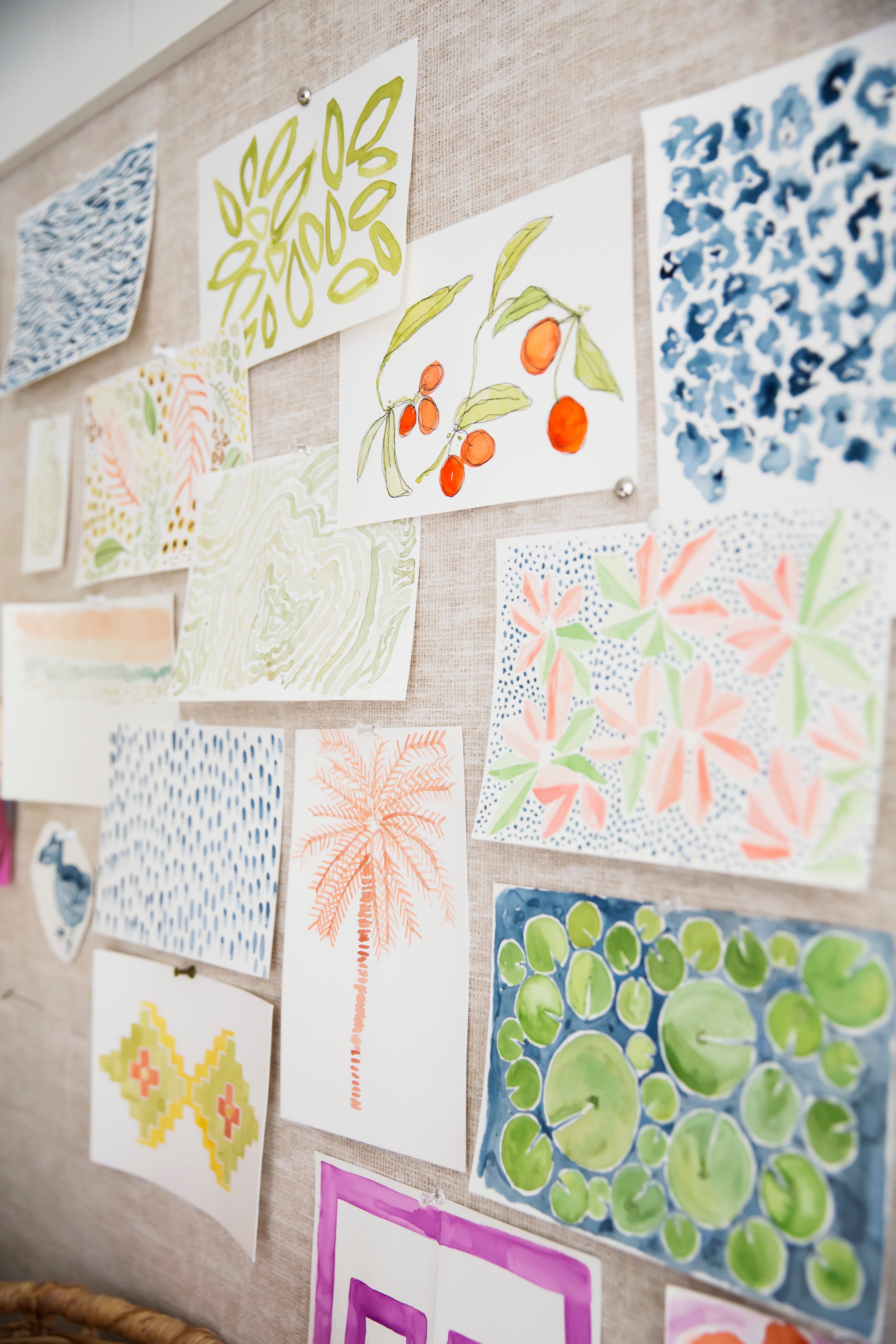 Watercolor is her favorite medium to unwind, play, and explore—often alongside her two daughters. She’s drawn to the slowness of the process: watching paint dry, mixing colors just enough, and letting water do what it wants to do. There’s a freedom in watercolor that can’t be forced, only guided. That sense of movement and imperfection is intentional; colors bleed, edges soften, and textures emerge naturally, creating patterns that feel collected rather than contrived.